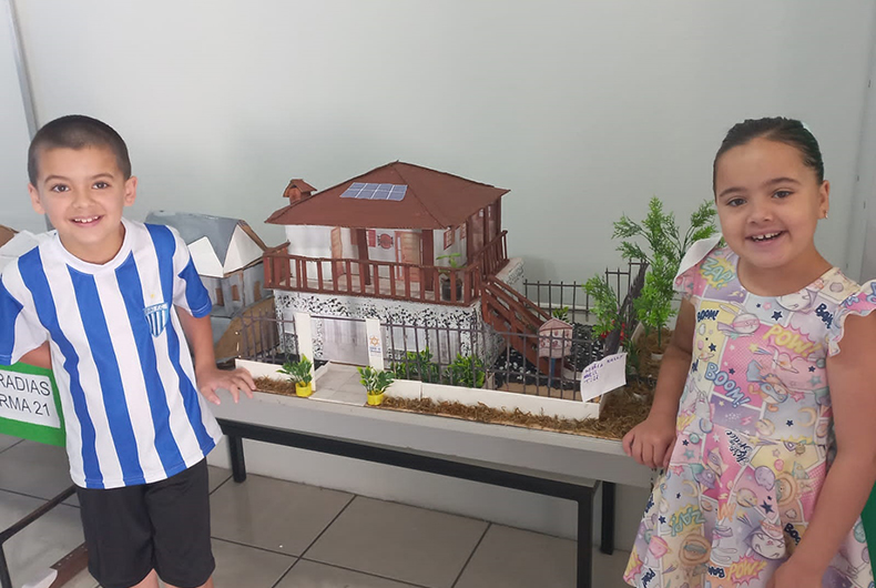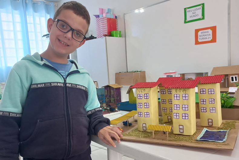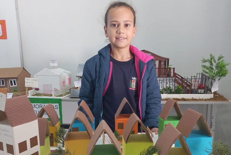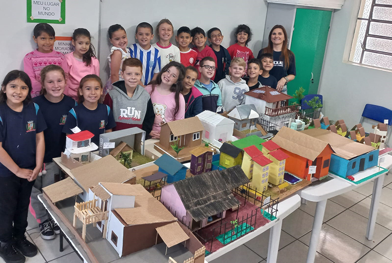 Outra iniciativa desenvolvida na Emef Duque de Caxias, é o projeto Meu Lugar no Mundo, com os alunos do 2º ano do Ensino Fundamental, conforme explica a professora dos pequenos, Sandra Reis. “O conteúdo desenvolvido neste projeto visa apresentar aos estudantes o seu lugar de vivência, por meio do estudo das moradias e de seu entorno, bem como na sua localização no mundo. Como fechamento do projeto os estudantes realizaram a construção da maquete da sua casa (moradia), utilizando materiais alternativos”, relatou.