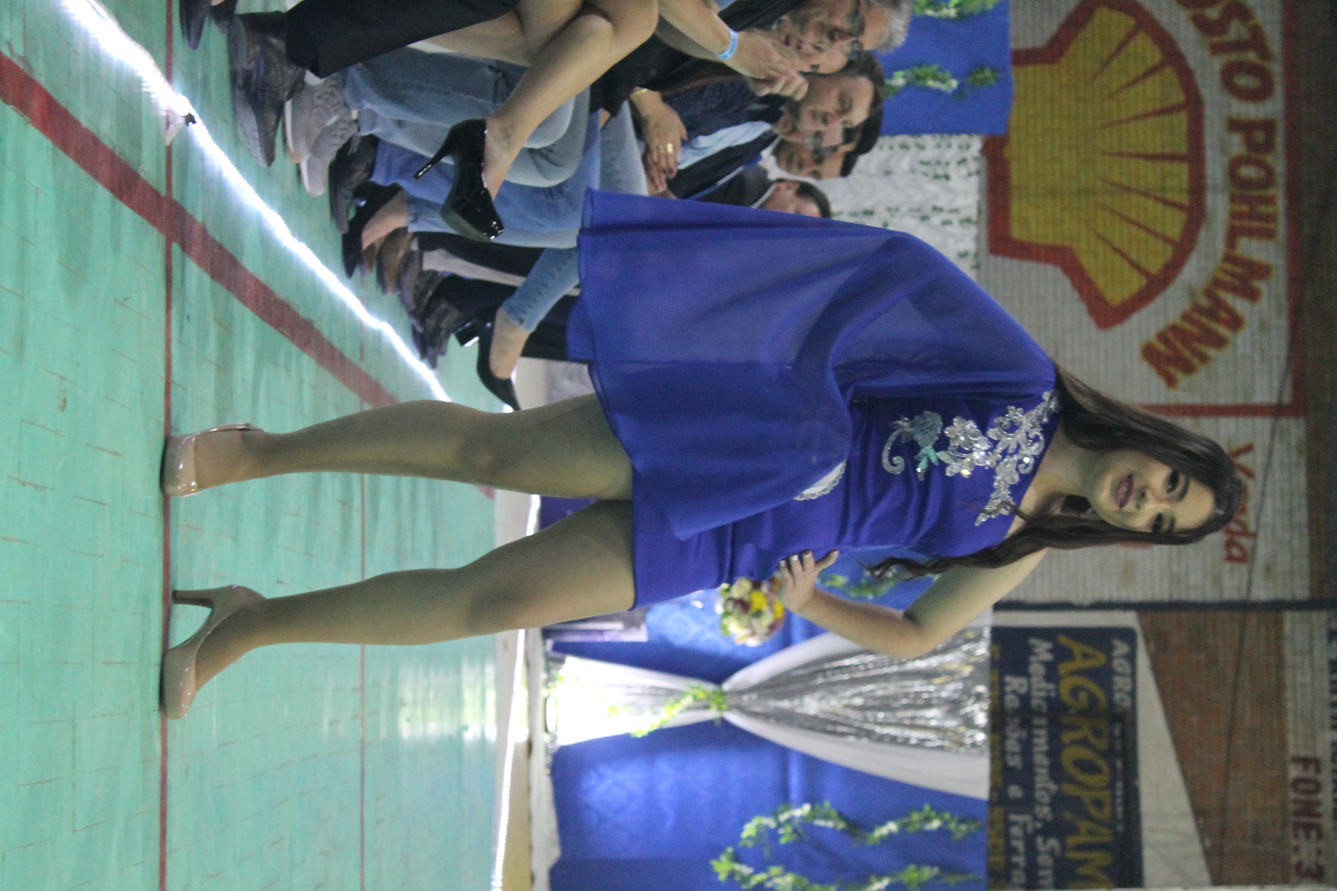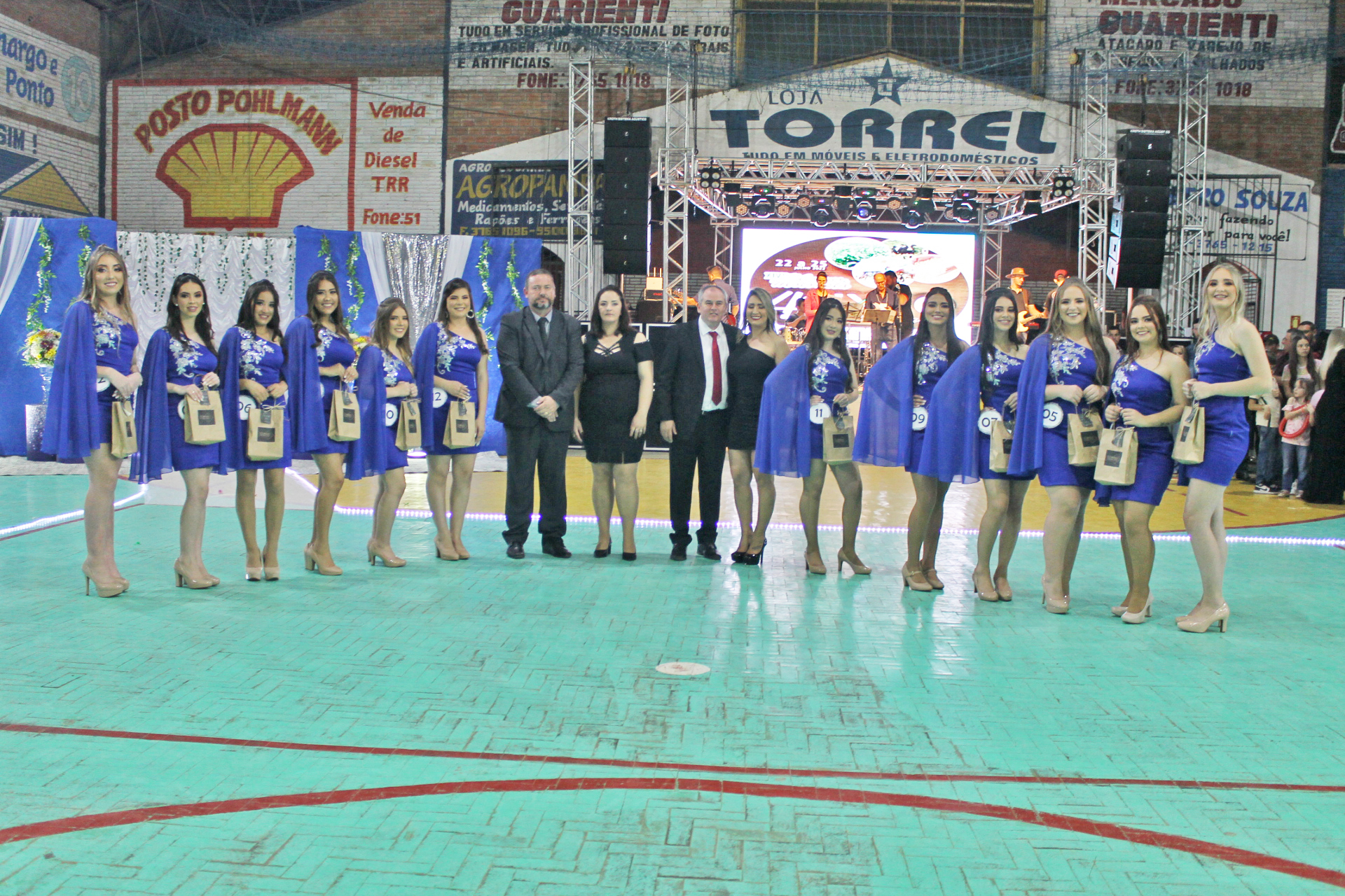 Após coquetel de apresentação com jurados e comitivas dos municípios da região, doze meninas, com idades entre 15 e 19 anos, desfilaram de forma coletiva e individual na quadra do ginásio da Escola Estadual de Ensino Médio Thomas Garcia da Costa.