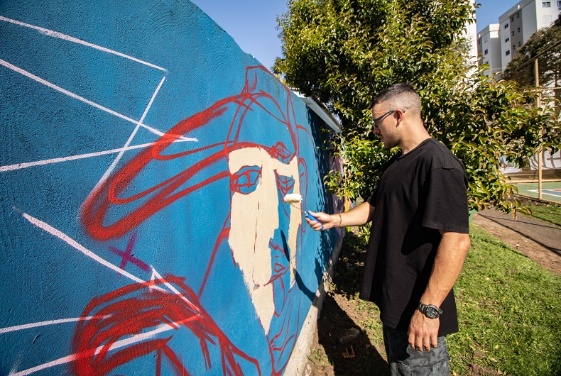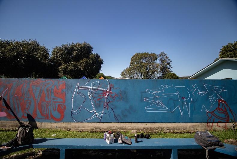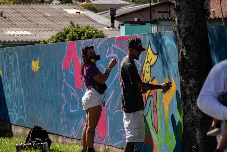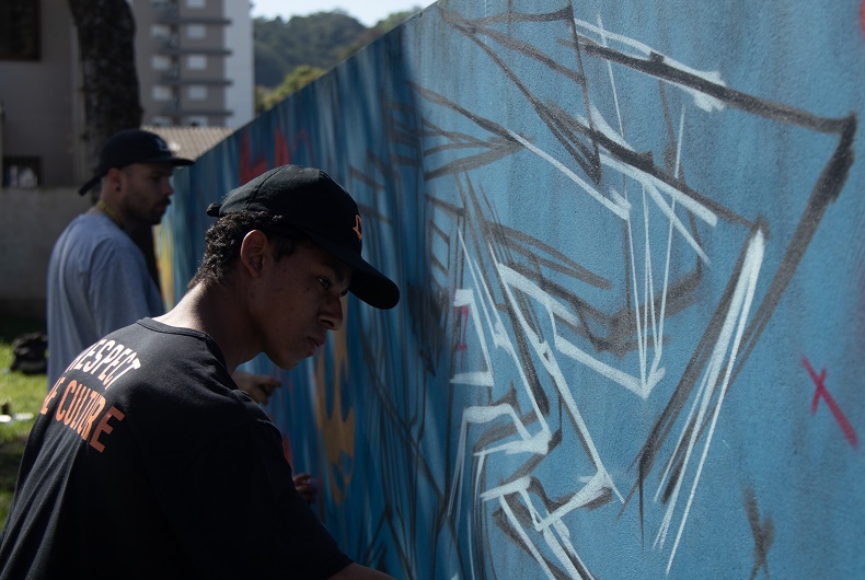 A Praça Hainsi Gralow, no Bairro Santo Inácio, foi o local escolhido por inúmeros artistas para cultuar a arte do grafite, música e dança neste sábado, 27. A festa, promovida pelo Ateliê Vivências Urbanas, em parceria com a Secretaria de Habitação, Desenvolvimento Social e Esporte (Sehase), iniciou às 9h30 e segue até o final da tarde. Além do grafite no muro da praça, há também basquete de rua, festival de dança e de rima.