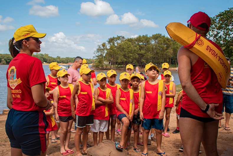 Um grupo de 24 crianças entre 6 e 12 anos participou, na manhã deste sábado, 27, do projeto Guarda-vidas Mirim, desenvolvido pelo Corpo de Bombeiros Militar. Os pequenos tiveram informações sobre ações preventivas para evitar acidentes nos ambientes aquáticos, como rios, lagos, mar e piscinas.