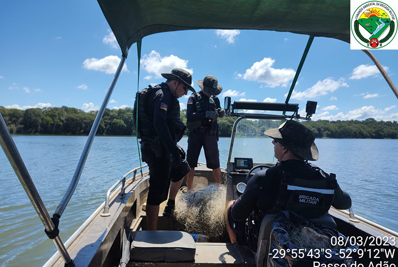 Ao todo, os policiais retiraram 10 redes de pesca, de malha e tamanhos variados, das águas. Os materiais, somados, são de cerca de 500 metros. Os proprietários, no entanto, não foram identificados.
