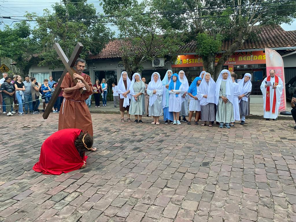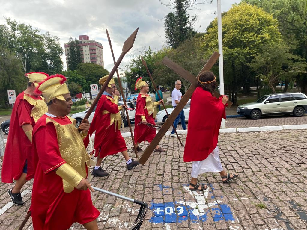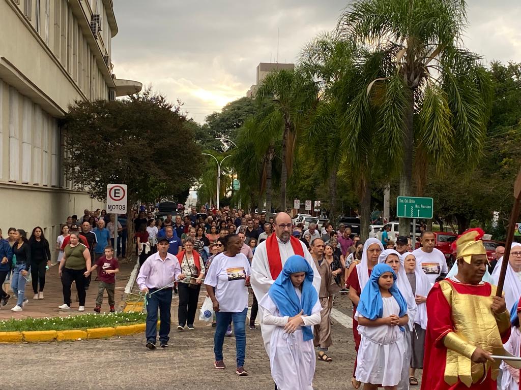 O tempo nublado não atrapalhou a fé e devoção de diversos santa-cruzenses que se reuniram neste feriado de Sexta-Feira Santa, 7, para realizar a 13ª Caminhada da Paixão de Cristo ao Parque da Cruz. Os fiéis saíram de frente da Catedral São João Batista, às 17 horas, e percorreram as ruas Ramiro Barcelos, Thomas Flores, do Moinho, Henrique Schuster, Arlindo Kothe, Irmão Pedro, Lotário Hauser, Edmundo Baumhardt, Avenida Dom Guilherme Müller e Guatambu. A procissão terminou às 19 horas, no Parque da Cruz.