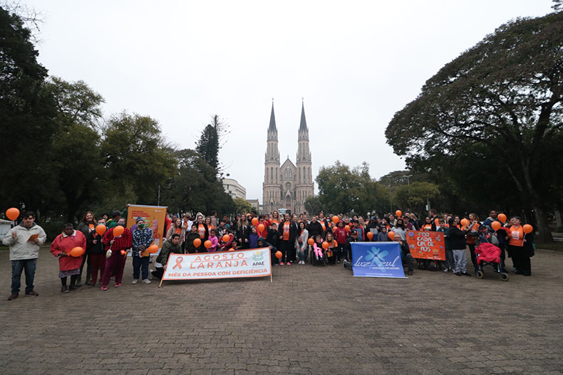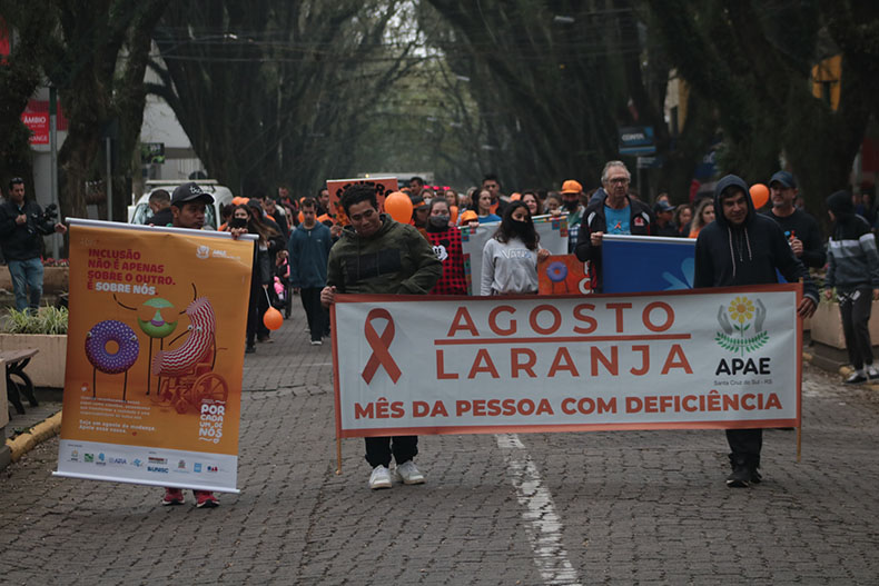 A Associação de Pais e Amigos dos Excepcionais (Apae) de Santa Cruz do Sul realizou na manhã desta terça-feira, 2, uma caminhada em abertura da programação do Agosto Laranja. O mês é dedicado à conscientização sobre a identificação de deficiências. O evento contou com a presença de atendidos, familiares e representantes da Apae e de outras entidades do município.