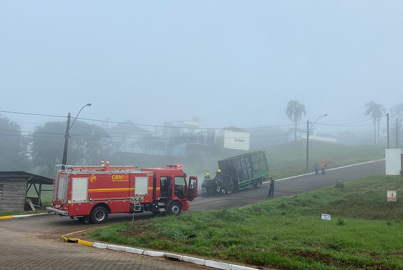 No início da manhã desta quarta-feira, 27, um caminhão da Conesul pegou fogo no Bairro Jardim Europa, em Santa Cruz. Por volta das 7h45, o veículo trafegava por ruas da região quando o sinistro começou. O motorista, de 48 anos, relatou que a luz da bateria piscou, sinalizando algum tipo de problema e, em seguida, as chamas iniciaram. Além do condutor, outro homem de 41 anos estava no veículo.