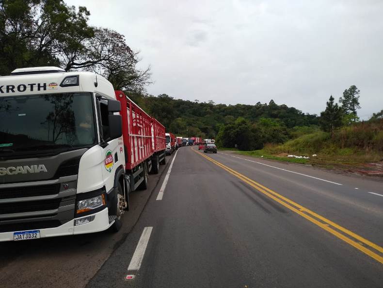 A manifestação já conta com dezenas de adeptos. O trânsito na RSC-287, porém, não está interrompido. Carros e ônibus estão transitando normalmente. Os caminhoneiros estão sendo orientados a parar no acostamento, pelo menos por um tempo, caso a carga seja perecível. A Polícia Rodoviária Estadual (PRE) está no local. É importante que os motoristas que pretendem passar pelo local diminuam a velocidade, pois a movimentação está intensa.