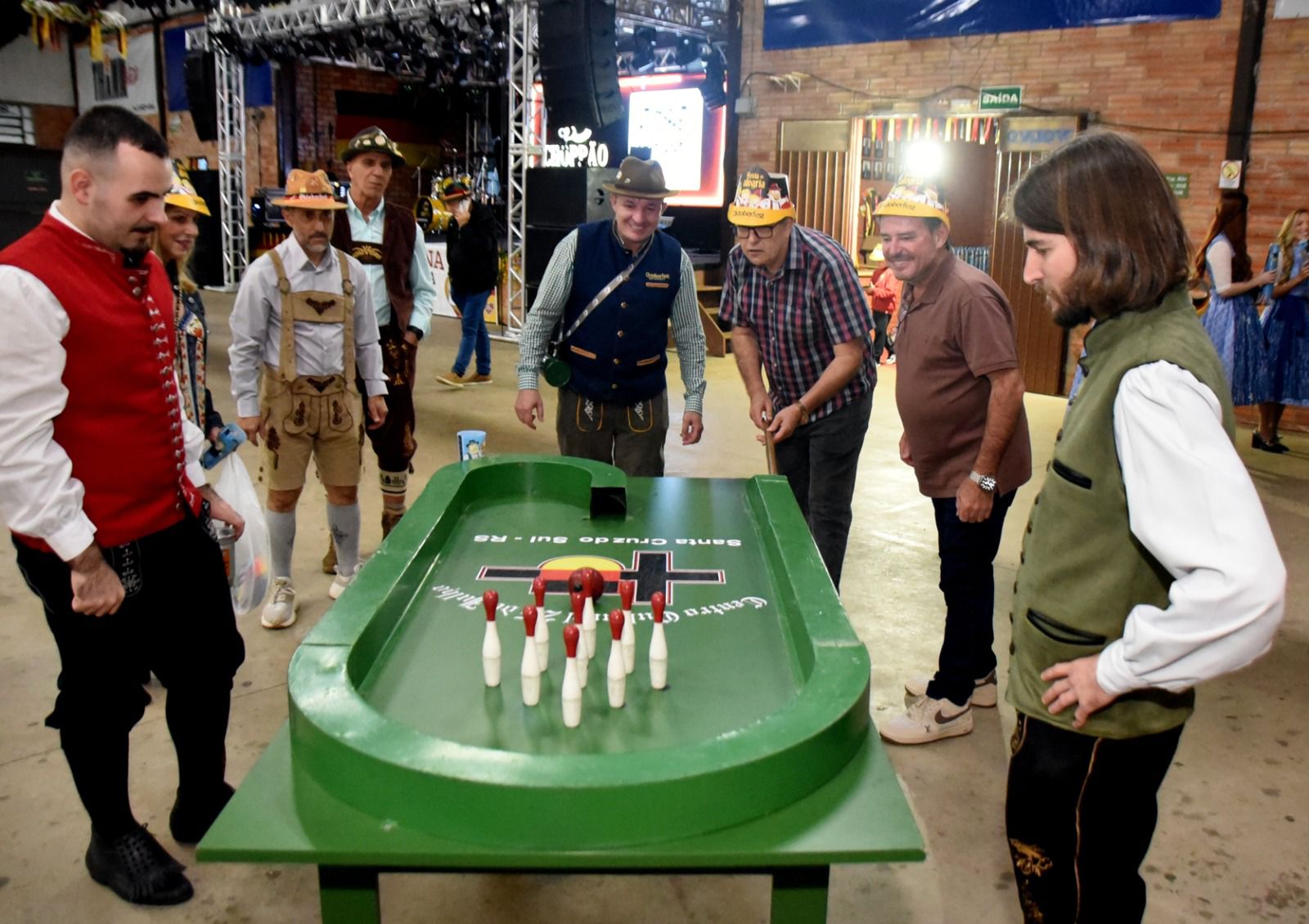 O evento contou com apresentação de danças folclóricas com integrantes do Grupo Polka do Centro Cultural 25 de Julho, demonstração dos jogos germânicos, com o bolão de mesa, e a tradicional polonaise, que lotou o salão. Na recepção, os convidados entraram no clima com os chapéus e copos personalizados da Oktoberfest. Para o presidente da Associação dos Motoristas de Lagoa Vermelha, Davi Toledo, a experiência foi inesquecível. “Só temos a agradecer a vocês pela parceria nesta festa incrível e maravilhosa”, comemorou. Um dos apoiadores locais da Caravana foi o ex-secretário estadual de Turismo e deputado estadual, Ronaldo Santini, natural de Lagoa Vermelha.