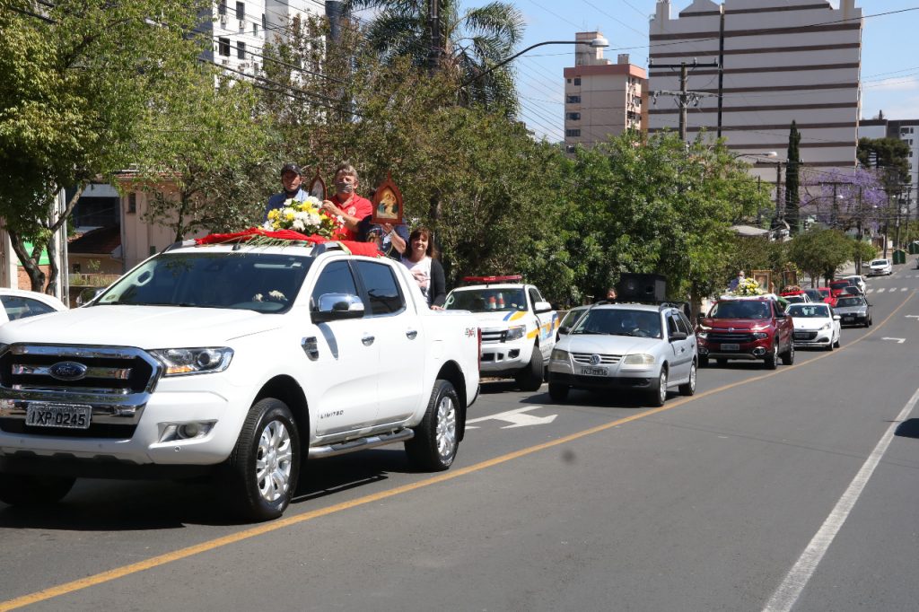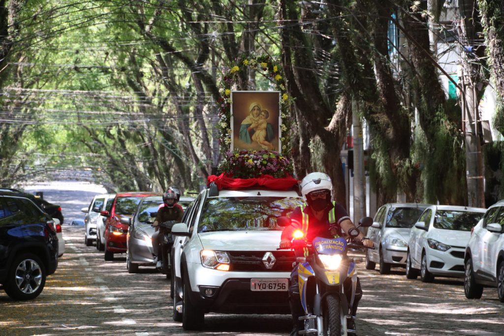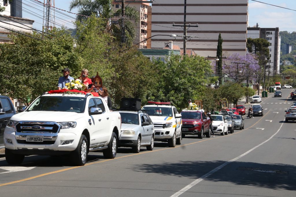 Por conta da pandemia do novo coronavírus, a 44ª Romaria ao Santuário de Schoenstatt realizada neste domingo, 22, foi feita num formato diferente. Ao invés da tradicional caminhada com a participação de milhares de romeiros que peregrinavam da Igreja São José ao antigo Santuário de Schoenstatt, na BR-471, neste ano, com o lema “Como Maria, revestidos do Espírito Santo, impulsionados à missão”, quatro veículos com a imagem da Mãe Rainha, acompanhados de carros de som e de veículos da Guarda Municipal, percorreram as ruas de Santa Cruz do Sul.