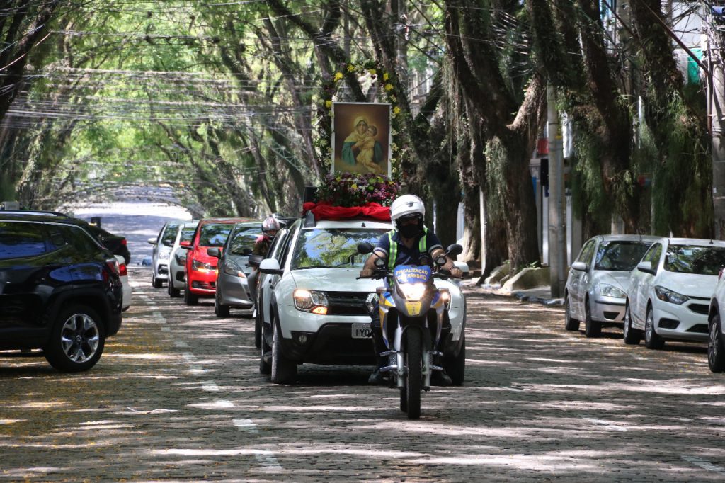 Segundo o bispo, a carreata foi a alternativa encontrada pela organização do evento, já que a realização da tradicional romaria havia sido descartada devido às restrições impostas pela pandemia. “É muito importante que neste dia tenhamos criatividade para celebrar dentro deste contexto em que estamos vivendo. A pandemia não permite unirmos de forma presencial, em grande multidão, como é típico das romarias, porém, podemos ser criativos e unirmos pela redes sociais. E, em respeito a isso, queremos hoje a união junto com Maria, Mãe e Rainha, vamos ao encontro de Jesus Cristo”, afirmou.