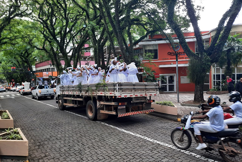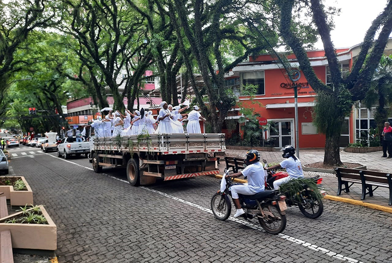 Às 10h30, a carreata saiu em direção ao Centro, passando por bairros como Santo Antônio e Arroio Grande. Conforme o babalorixá Pai Antônio de Ogum, dirigente espiritual do Templo de Umbanda, neste ano foi optado por não realizar a conhecida alvorada festiva.