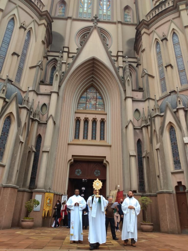 Segundo o padre, o Corpus Christi é um dia especial para a igreja católica, para os cristãos. “Mostramos a fé pública em Jesus Cristo que se manifestou como pão da vida. Sabemos que ele está presente na vida, na fé no coração, mas também na Santa Eucaristia. Ele reuniu seus discípulos primeiros lavando os pés e depois celebrou a Eucaristia. Para nós, tem um grande valor, é um grande sacramento.”
