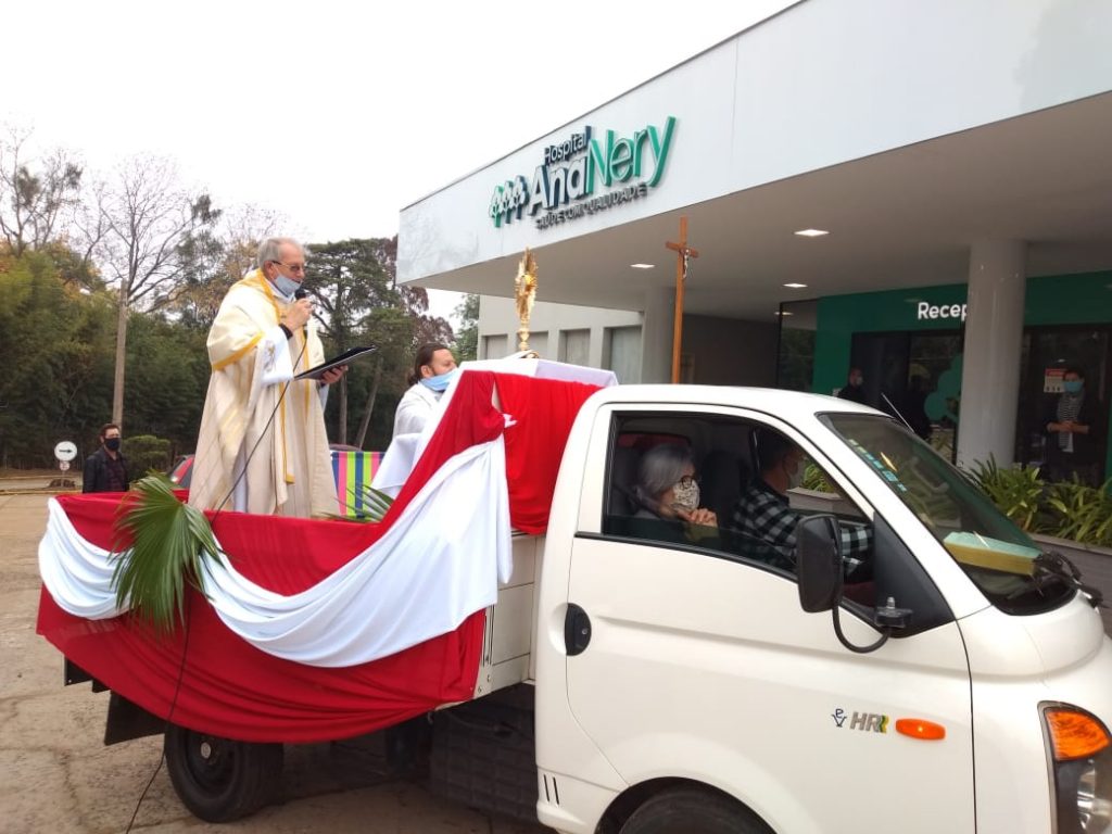 Após a missa, por volta das 10 horas, uma procissão de carros será realizada, passando pelo Hospital Ana Nery, Hospital de Campanha e no Hospital Santa Cruz. “Vamos oferecer benção aos irmãos que carecem de saúde. Fica o convite para quem quiser acompanhar de carro. Além disso, pedimos que as pessoas coloquem na frente de casa um símbolo que lembre o dia, como bacia com água ou uma cruz, que quando passarmos a benção será estendida a essas famílias”, complementa o padre Fabrício Niederle, um dos celebrantes da missa desta quinta. Ainda no percurso, os participantes vão recolher donativos para que sejam alimentos às famílias em situação de vulnerabilidade. Nas demais paróquias, as procissões passarão pela ESF de cada bairro.