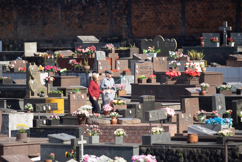O dia de sol e temperatura amena contribuíram para a grande movimentação nos cemitérios de Santa Cruz do Sul nesta quarta-feira, 2, por ocasião do Dia de Finados. Considerada uma data de reflexão e homenagens aos entes queridos que já partiram, o feriado levou muitas pessoas tanto ao Cemitério Municipal como ao Cemitério Católico São João Batista, os dois maiores da zona urbana do município. Além de colocar flores e arranjos nos túmulos e jazigos, os familiares aproveitaram para fazer a limpeza das sepulturas.