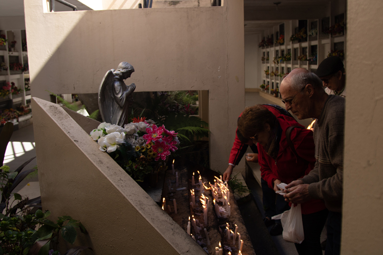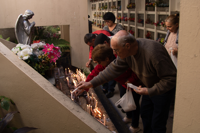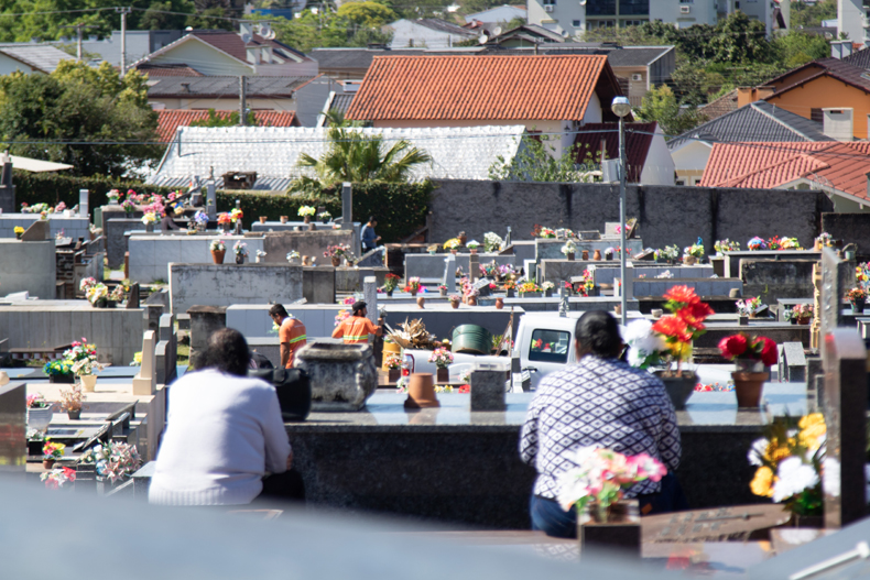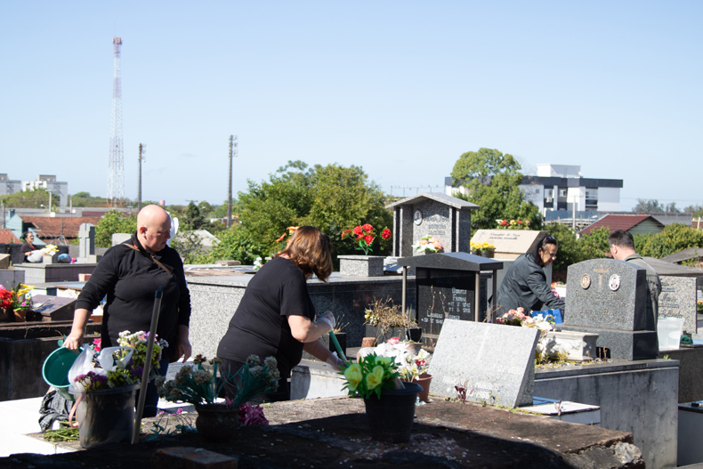 “Percebo que a cada ano está menor, antigamente não era possível sequer caminhar direito aqui dentro de tanta gente”, recorda. Maria acredita que a tradição de ir aos cemitérios e homenagear as pessoas que já morreram está se perdendo com o passar dos anos. “Isso que eu estou fazendo a minha filha não faz, ela vem aqui depois somente para olhar e rezar.”