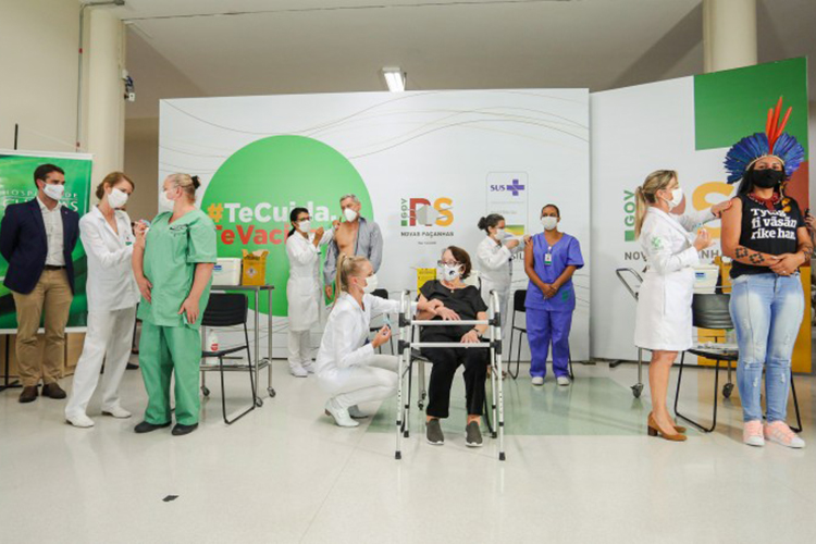Pertencentes aos grupos de risco prioritários do Plano Nacional de Imunizações, Eloina Gonçalves Born, de 99 anos, moradora do Residencial Geriátrico Donna Care; Jorge Amilton Hoher, 68 anos, médico-chefe do serviço de Medicina Intensiva da Irmandade da Santa Casa de Misericórdia de Porto Alegre; Carla Ribeiro, 32 anos, da etnia kaingang e residente da Aldeia Fag Nhin, na Lomba do Pinheiro; Joelma Kazimirski, 48 anos, auxiliar de higienização do Grupo Hospitalar Conceição; e Aline Marques da Silva, 40 anos, técnica de Enfermagem CTI Covid do Hospital de Clínicas de Porto Alegre (HCPA), se tornaram símbolos do início da imunização no RS.
