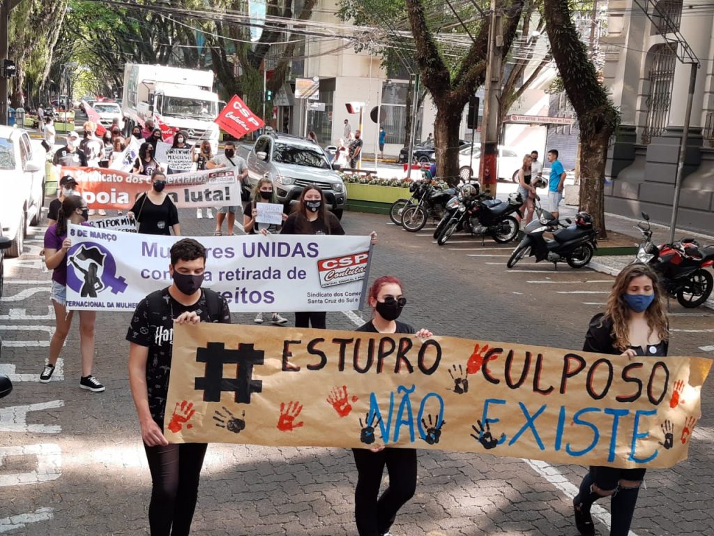 Um coletivo de mulheres santa-cruzenses protestou na tarde deste sábado, 7, contra o desrespeito sofrido pela influenciadora digital Mariana Ferrer. Ela foi vítima de abuso sexual. No entanto, foi acusada de ter provocado a violência, tendo o crime contra si sendo considerado como “estupro culposo”, em recente julgamento.