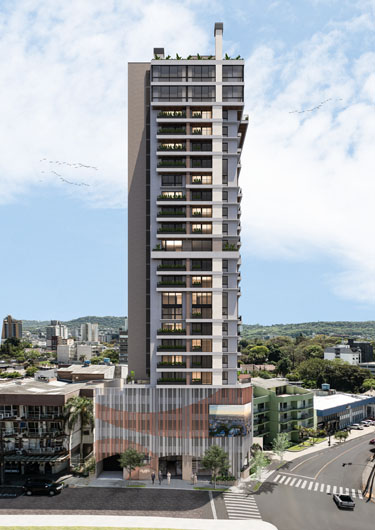 Apresentado pela Rosacruz Incorporadora, o edifício estará localizado na esquina das ruas Borges de Medeiros e Thomaz Flores, no Centro. Ele será o primeiro na cidade a trazer o conceito de Smart Living, utilizando a tecnologia para facilitar a moradia e os negócios.
