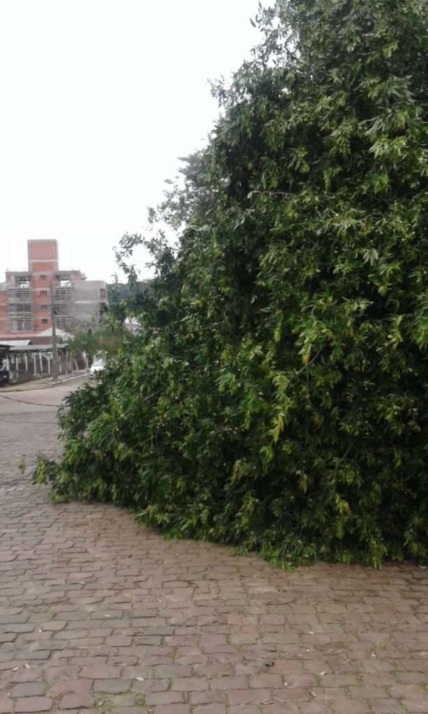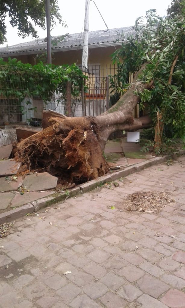 O coordenador da Central de Serviços da Prefeitura, Martin Orlando Duering, explicou à Rádio Gazeta que a árvore foi arrancada pela raiz, quebrando a calçada, arrebentando a rede elétrica de uma casa e danificando o muro. “Primeiramente isolamos o local por causa da rede elétrica. A RGE virá em seguida fazer o conserto. Também tivemos relatos de galhos caídos pela cidade, mas nada grave.”