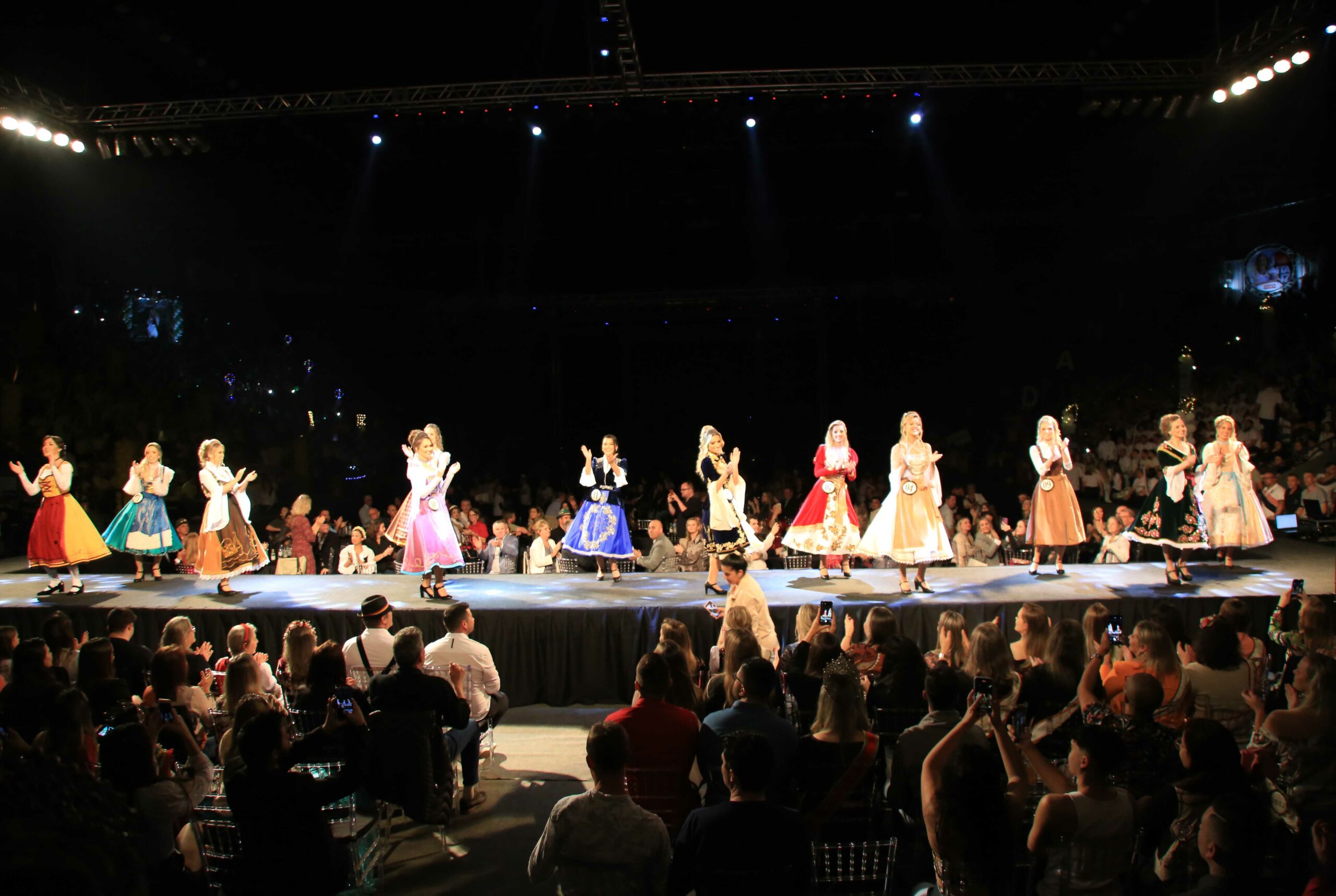 O evento iniciou com todas as candidatas sobre a passarela, onde, de imediato, executaram uma dança. Em seguida, foram convidadas a fazer um desfile coletivo. Depois, se apresentaram individualmente, contando por que querem ser uma das soberanas da Oktoberfest e detalhando as referências utilizadas para a confecção do vestido.