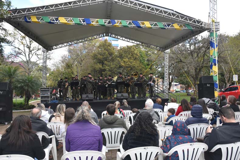 A Semana da Pátria está se encerrando e, neste sábado, 6, foi mais uma tarde de celebrações culturais e artísticas na Praça da Bandeira, de Santa Cruz do Sul. A programação iniciou com a apresentação da Banda do 7º Batalhão de Infantaria Blindado (7º BIB), que interpretou canções clássicas e populares. Soldados do 7º BIB também realizaram atividades com crianças em vários equipamentos instalados no local, como escalada, rapel e visita orientada aos blindados. Os secretários de Educação, Jane Sabin, e o de Saúde, Rodrigo Rabuske, prestigiaram a programação.