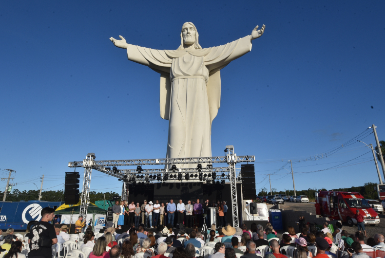 A estrutura do Cristo Acolhedor é a segunda em tamanho no Rio Grande do Sul. Tem 20 metros de estátua e outros quatro de base, onde será montada uma capela para a realização de encontros religiosos.
