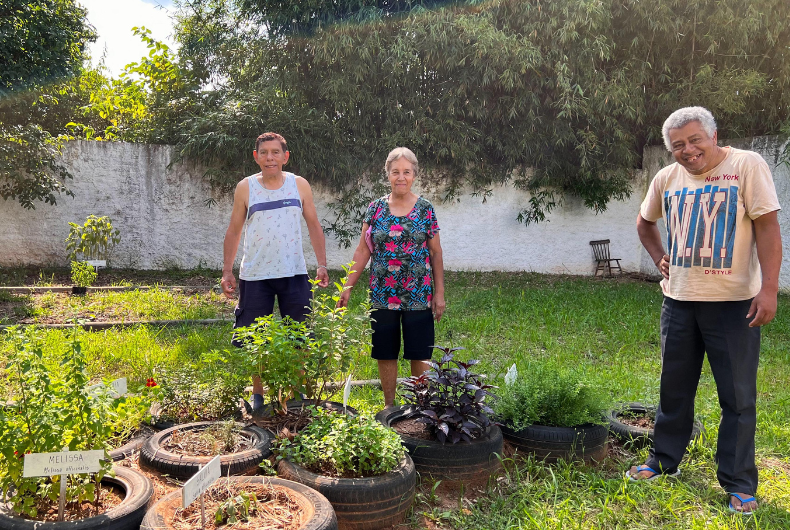 Nos fundos do prédio da ESF Senai, Zona Sul de Santa Cruz, tem um cantinho que a aposentada Cenira Alves, de 74 anos, adora ficar. “Aqui não tem barulho e a gente se sente bem”, revelou. Além de sombra e um extenso gramado, tem canteiros com algumas hortaliças e folhas verdes com chás medicinais.