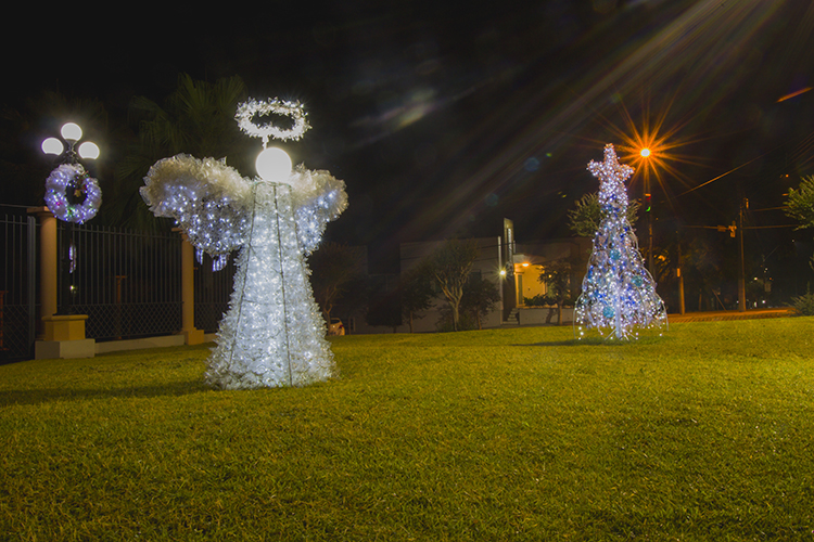 O grupo arrecadou garrafas pet que se transformaram em anjos, duas árvores de Natal e 12 guirlandas. “Tive colaboração para as armações de ferro, fiz o projeto de uma árvore mais funcional e moderna e os dois anjos. Chamei duas amigas que trabalharam no ano passado e neste ano”, relata Elí. As armações de ferro foram fornecidas pelo engenheiro Carlos Augusto Gerhard. A iluminação também foi colaboração gratuita de um eletricista.