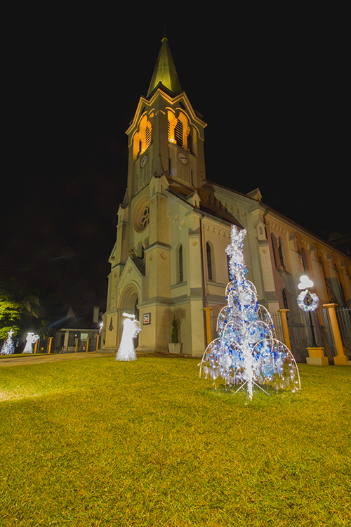 Na Igreja Evangélica no Centro de Santa Cruz do Sul, o Natal já está presente na forma de decorações sustentáveis, feitas a partir de recicláveis como garrafas PET. O material produzido por voluntárias foi instalado no local na última sexta-feira, 20, e ganhou iluminação especial, chamando atenção especialmente à noite.