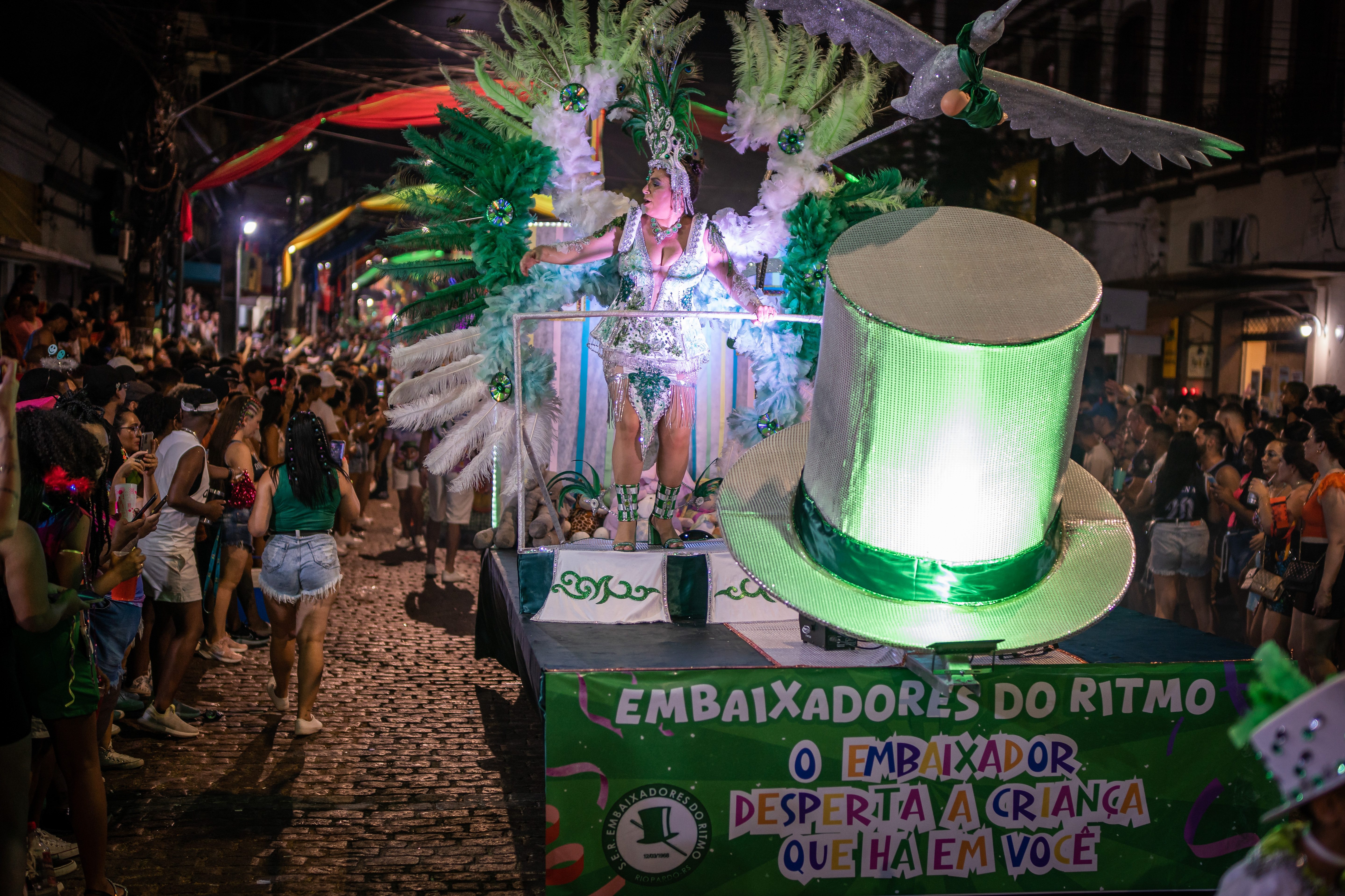 Por fim, foi a vez da Sociedade Esportiva e Recreativa Embaixadores do Ritmo. A infância foi a grande homenageada no desfile através do enredo “O Embaixador desperta a criança que há em você”. Alegria, “sapequices” e a nostalgia marcaram a apresentação, composta por 9 alas que incluíram três carros alegóricos e 400 componentes.