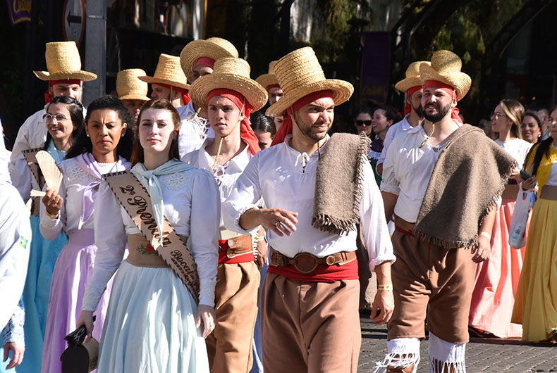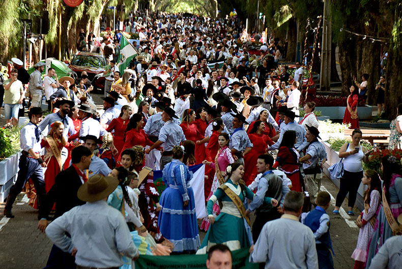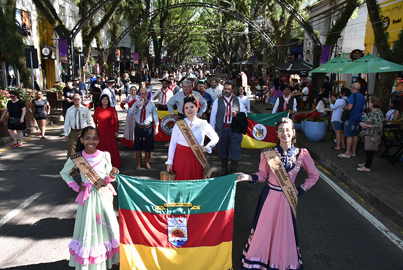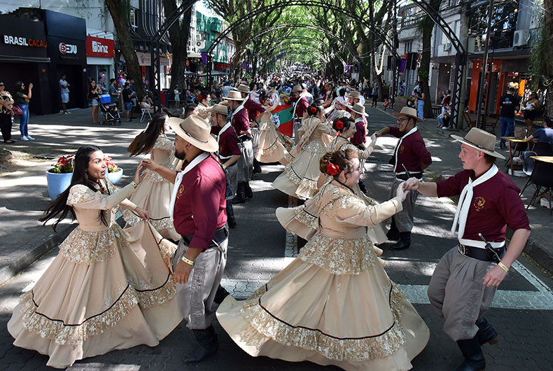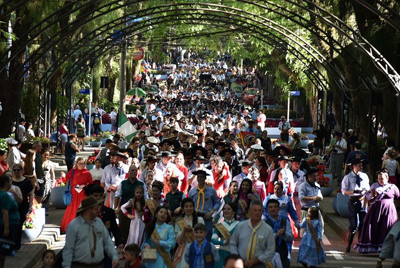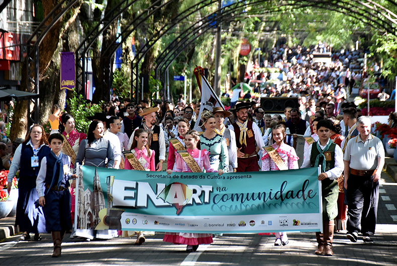 O calor da tarde desta sexta-feira, 15, não foi empecilho para a população santa-cruzense ir até a Rua Marechal Floriano prestigiar a terceira edição do Enart na Comunidade. O desfile temático reuniu a comissão executiva e entidades participantes do 37º Encontro de Artes e Tradição Gaúcha (Enart), realizado em Santa Cruz do Sul neste fim de semana. Centenas de pessoas, representando todas as 30 regiões tradicionalistas, passaram pelo tradicional trajeto entre as ruas Ramiro Barcelos e Galvão Costa, no Centro.