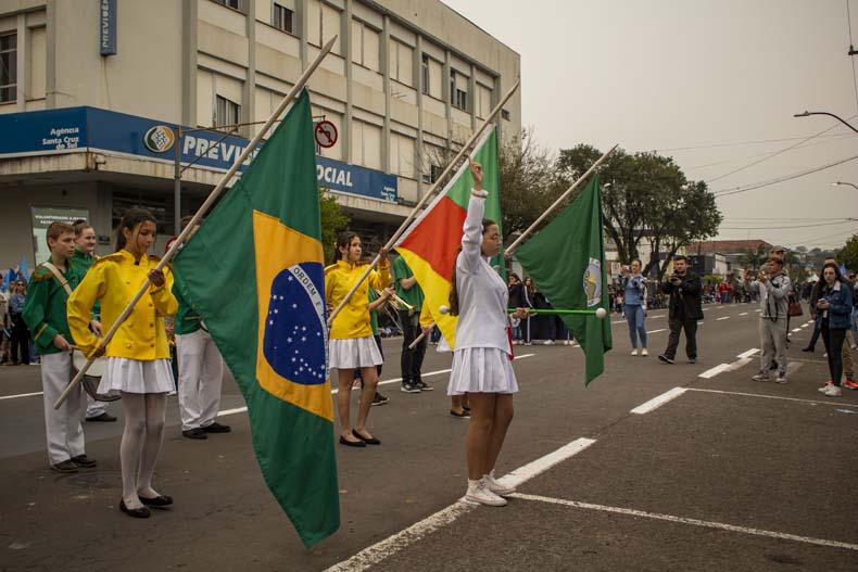 Este sábado, 7, é marcado por homenagens ao Dia da Independência em todo o território nacional. Em Santa Cruz do Sul, o Desfile Cívico-Militar de 7 de setembro iniciou perto das 9 horas da manhã. A partir da esquina das ruas Borges de Medeiros com a Ernesto Alves, os mais de 80 grupos inscritos desceram a avenida expondo as produções que exigiram semanas de preparo e treinamento. Cerca de 4,5 mil participaram da caminhada cívica.