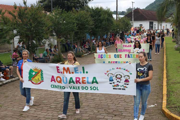 Com chimarrão em mãos e o orgulho estampado no olhar, centenas de vale-solenses participaram do desfile municipal, na manhã deste domingo, 10. O evento fechou com chave de ouro as comemorações pelos 27 anos do município, cuja programação teve início no dia 1º de novembro. Ao longo da manhã, 40 entidades empresariais, públicas e beneficentes demonstraram muita criatividade na Avenida 15 de setembro.