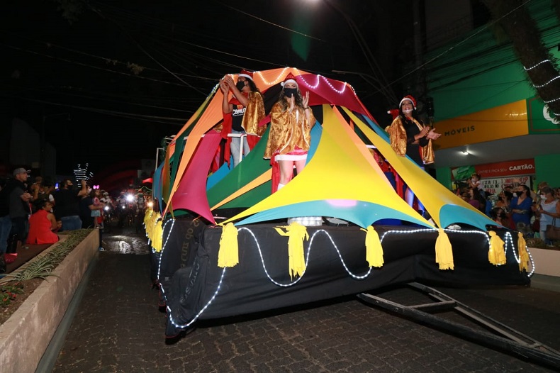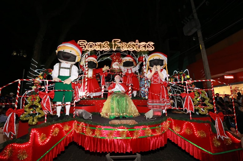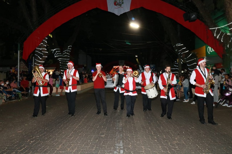 O primeiro desfile da programação da Christkindfest levou grande público para a Rua Marechal Floriano, na noite desta quarta-feira, 8. Com diferentes mensagens, muita música natalina e orientação sobre os cuidados em relação à Covid-19, os integrantes das alas proporcionaram momento de encanto e de esperança.