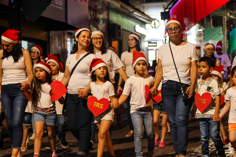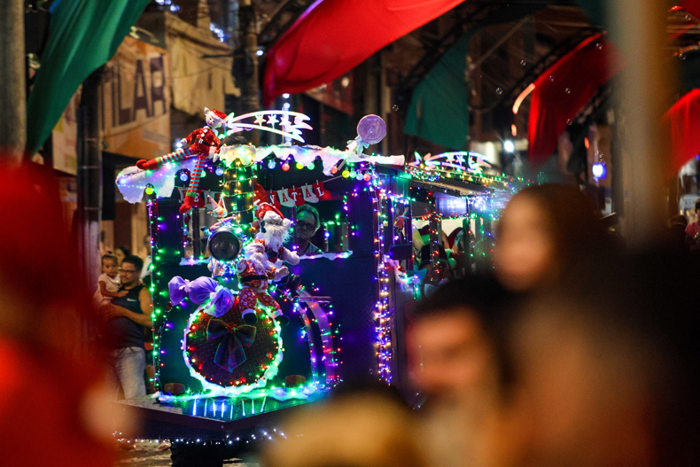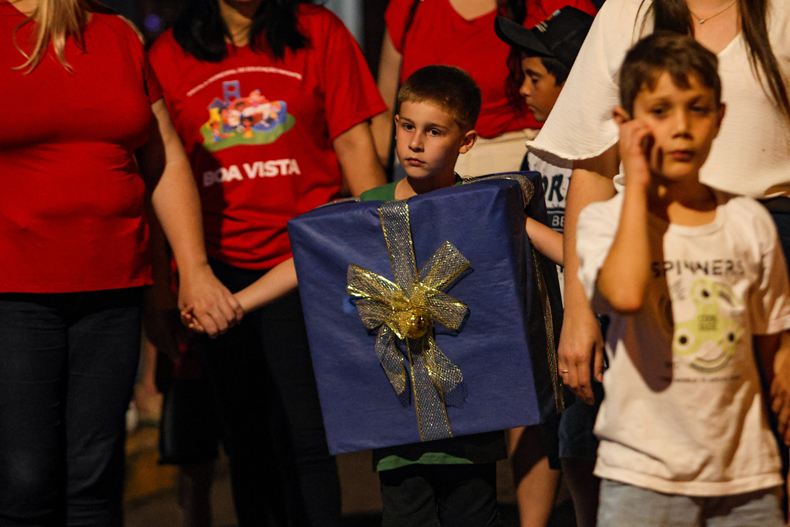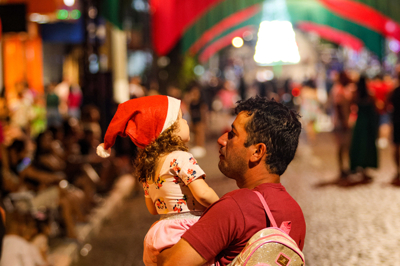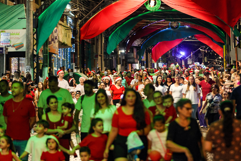 A população de Rio Pardo lotou a Rua Andrade Neves e outras vias do entorno para prestigiar a chegada do Papai Noel. Batizada de Natal de Rio Pardo: Encanto e Magia, a programação começou ainda no fim de semana, mas teve o ponto alto na noite dessa quarta-feira, 13, com um desfile temático que levou milhares de pessoas para o Centro. Após a apresentação, foi realizada a abertura do Vilarejo do Papai Noel, um espaço localizado na esquina com a Rua Mateus Simões que possui decoração e bancas com venda de artesanato natalino.