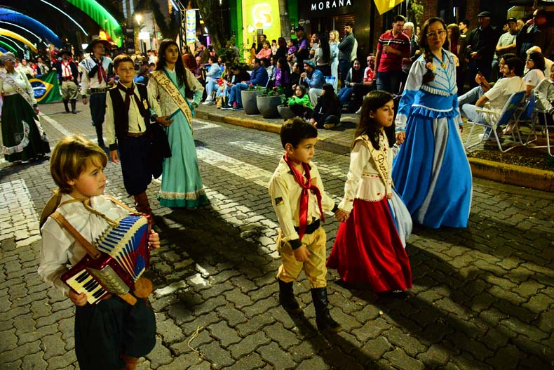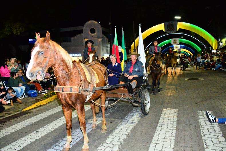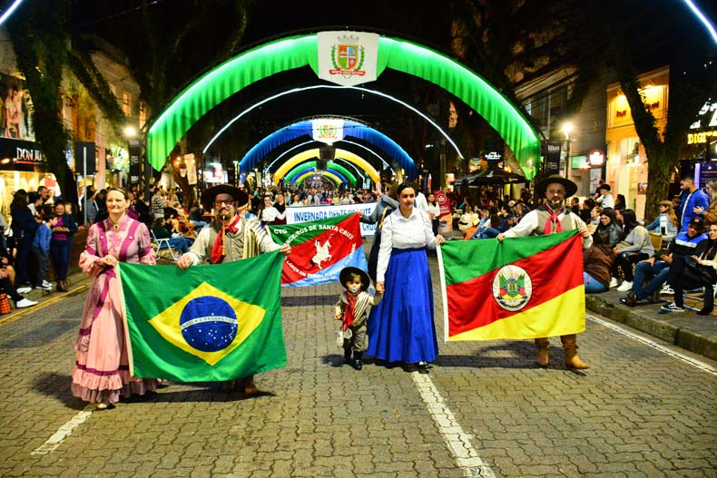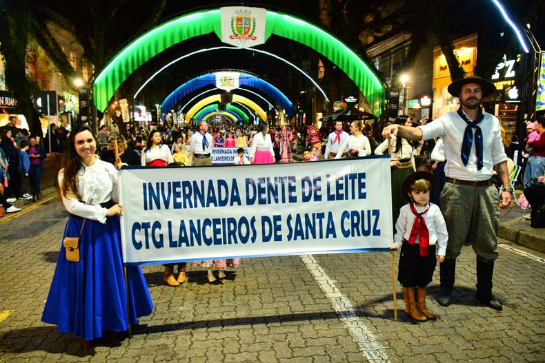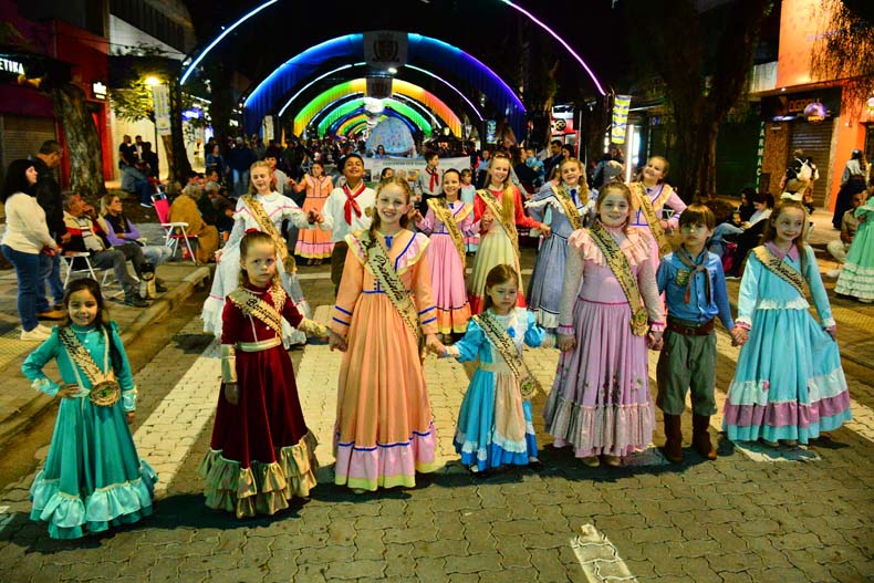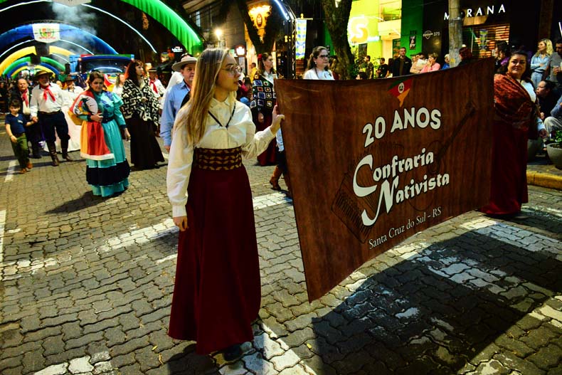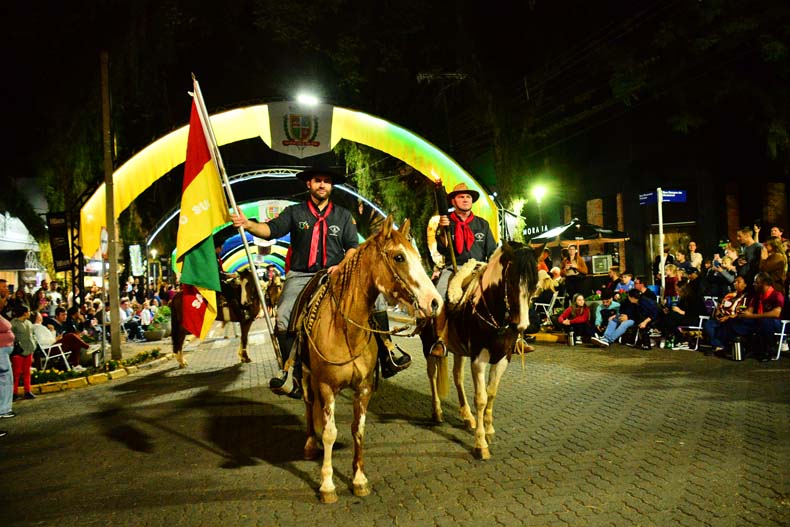 A via mais famosa de Santa Cruz do Sul recebeu na noite desta terça-feira, 16, o primeiro desfile temático noturno realizado no município para celebrar a Semana Farroupilha. O evento, que ocorreu na Rua Marechal Floriano, envolveu 23 entidades.