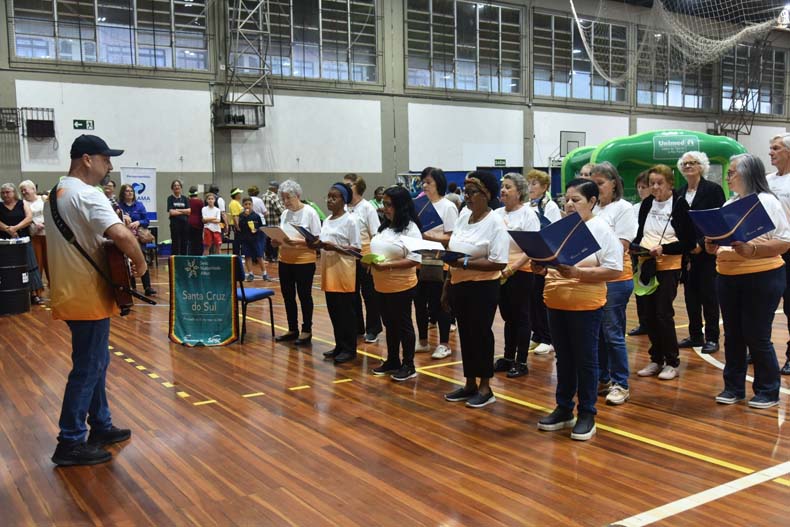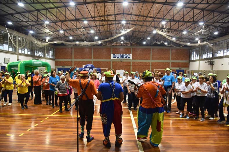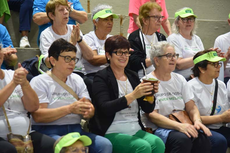 Foi com um sorriso no rosto expressando toda a alegria pelo encontro, que o Dia Internacional do Idoso foi celebrado nesta terça-feira, 1º, no ginásio da Universidade de Santa Cruz do Sul (Unisc). Em uma realização conjunta entre o Serviço Social do Comércio (Sesc), Unimed, Unisc e prefeitura de Santa Cruz, foi promovida uma Mateada Cultural. Cerca de 300 idosos, incluindo grupos atendidos pela sociedade civil e prefeitura, prestigiaram a programação.
