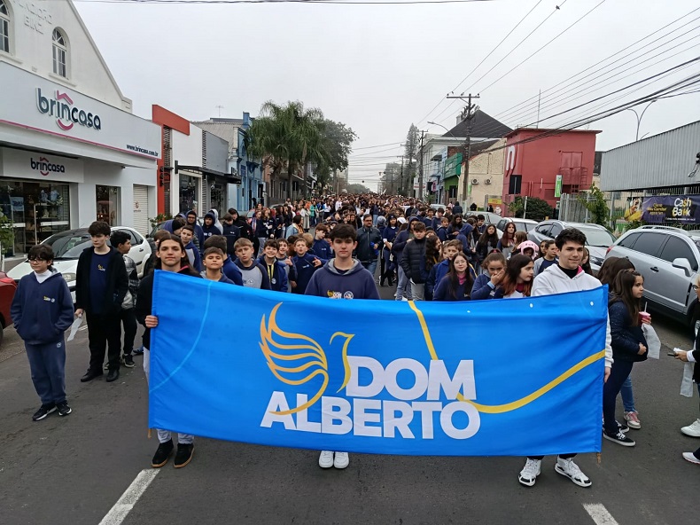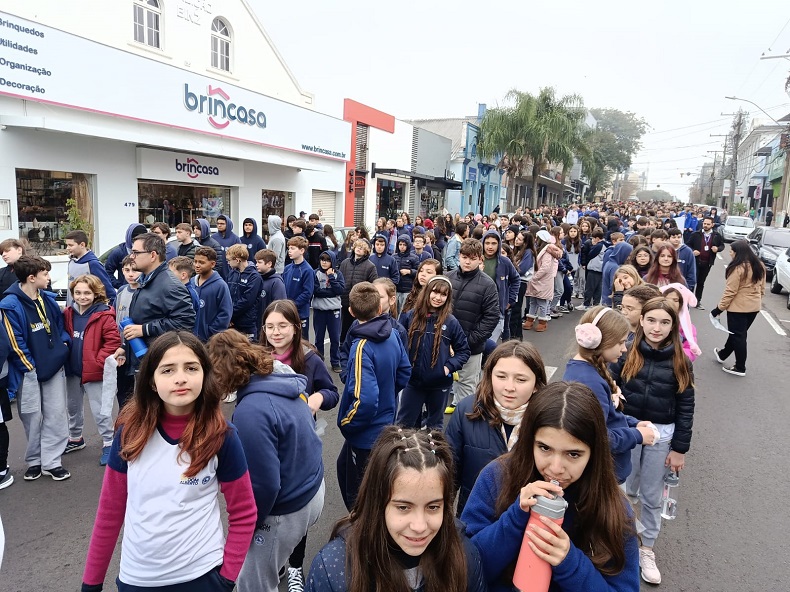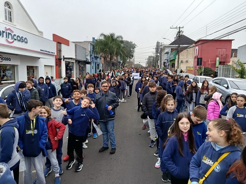 O bispo dom Itacir Brassiani e o pastor Lindomar Raach participaram do ato. A expectativa é de que 1,3 mil estudantes participaram da caminhada juntamente com seus professores e responsáveis pelas escolas.