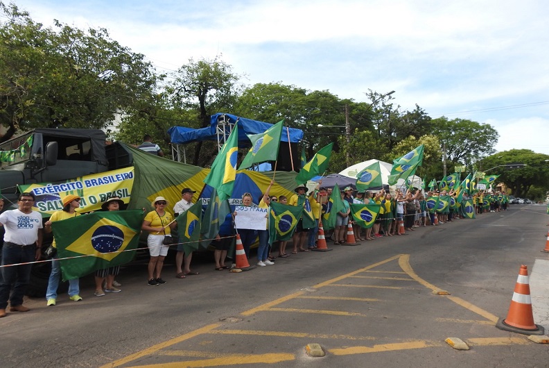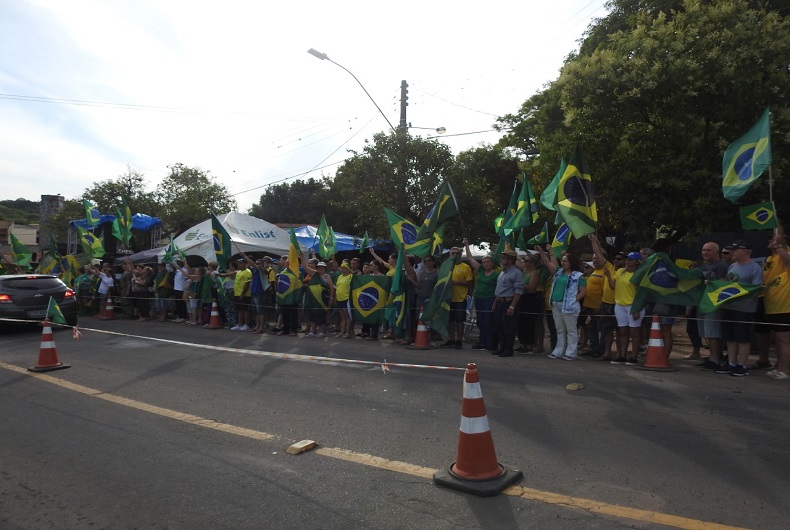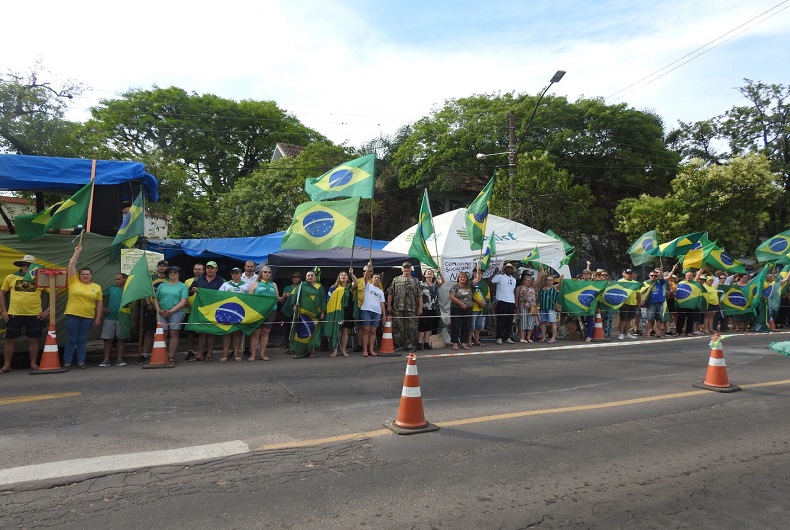 Com bandeiras do Brasil e camisetas da Seleção Brasileira, entoando cânticos exaltando o patriotismo, fazendo orações e reproduzindo o hino nacional em uma caixa de som, os apoiadores do presidente Jair Bolsonaro, mais uma vez, marcaram presença em peso neste domingo, 20, em frente ao 7º Batalhão de Infantaria Blindado (7º BIB), em Santa Cruz do Sul.