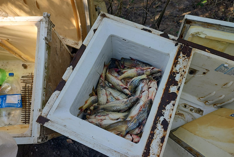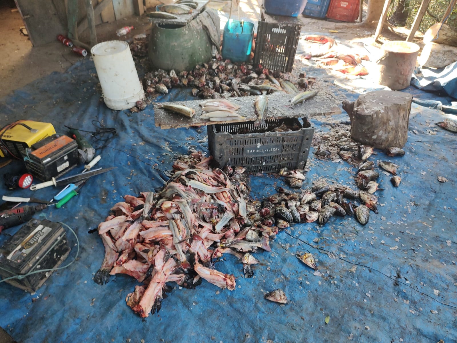 Durante a ação foi fiscalizado um acampamento ribeirinho às margens do Rio Jacuí, no município de Pantano Grande. Foram abordados seis homens que praticavam crime de pesca irregular. Eles realizavam o beneficiamento de pescado sem qualquer higiene. Haviam peixes das espécimes traíra, pintado, cascudo, jundiá, inteiros, além de grande quantidade de filé de peixe, totalizando 230 quilos.