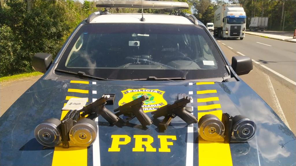 Na manhã desta terça-feira, 30, a Polícia Rodoviária Federal apreendeu três pistolas e dez carregadores na BR-386, em Montenegro. A ação aconteceu durante abordagem a um ônibus. Os policiais pararam o veículo que vinha da região de Foz do Iguaçu. Ao revistarem a bagagem de uma mulher paraguaia, encontraram três pistolas de origem turca e dez carregadores. Dentre os carregadores, havia dois para fuzil 5.56 com capacidade estendida para 100 munições cada um.