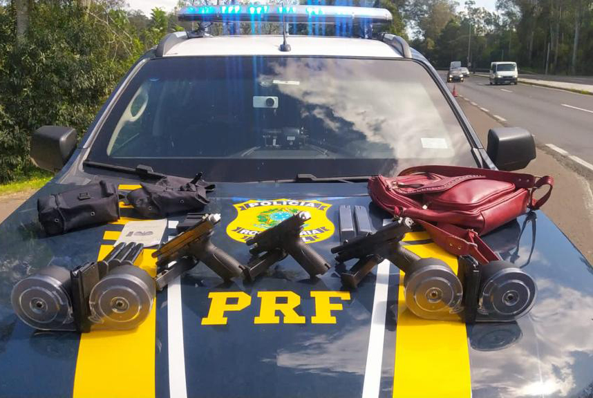 Na manhã desta terça-feira, 30, a Polícia Rodoviária Federal apreendeu três pistolas e dez carregadores na BR-386, em Montenegro. A ação aconteceu durante abordagem a um ônibus. Os policiais pararam o veículo que vinha da região de Foz do Iguaçu. Ao revistarem a bagagem de uma mulher paraguaia, encontraram três pistolas de origem turca e dez carregadores. Dentre os carregadores, havia dois para fuzil 5.56 com capacidade estendida para 100 munições cada um.