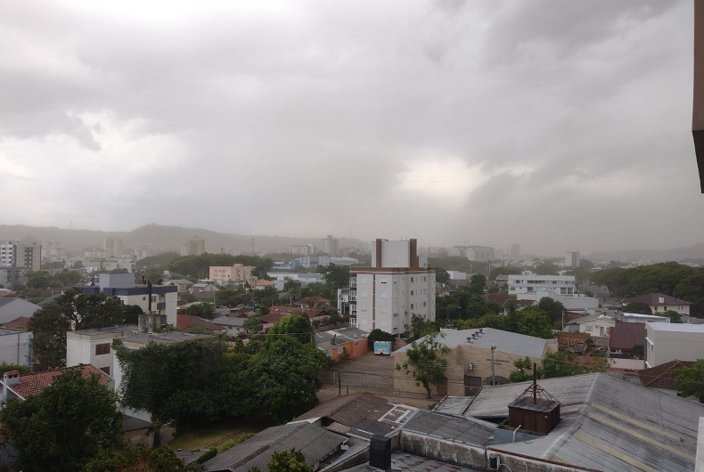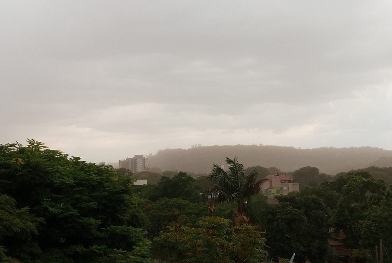Moradores de diversos bairros de Santa Cruz do Sul e também veranistas que estavam na Praia dos Ingazeiros, em Rio Pardo, registraram imagens de uma nuvem de poeira que atingiu a região no começo da tarde deste domingo, 2.