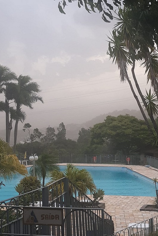 Pouco antes das 14 horas, o vento forte balançou árvores e levantou a poeira, que foi vista e relatada por leitores do Portal Gaz nos bairros Ana Nery, Universitário, Aliança, São João, Santo Antônio e Bonfim, além da localidade de Linha Travessa.