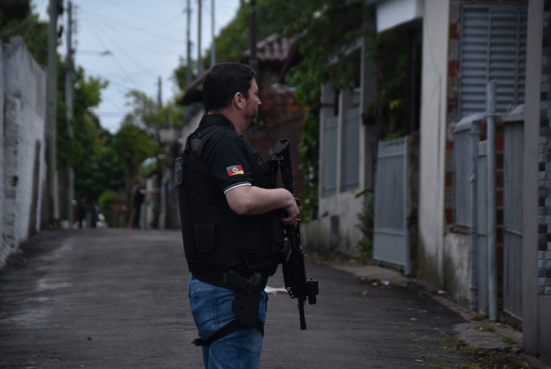A Polícia Civil deflagrou uma operação no Bairro Bom Jesus, em Santa Cruz do Sul, na manhã desta sexta-feira, 8. Mandados de busca e apreensão foram cumpridos em residências de investigados por delitos graves. Ao todo, 40 agentes participaram da ofensiva. Um homem de 35 anos foi preso em flagrante no chamado Beco do Caqui por posse irregular de arma de fogo de uso permitido, pois foi encontrado na residência dele um revólver calibre 38 com numeração raspada.