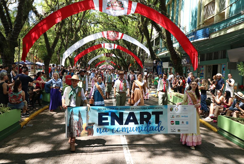A manhã deste sábado, 19, foi marcada por um desfile das regiões tradicionalistas que participam da 35ª edição do Encontro de Artes e Tradição Gaúcha (Enart). As delegações percorreram a Marechal Floriano apresentando danças e levando ao público a essência da cultura gaúcha em cada canto do Estado.