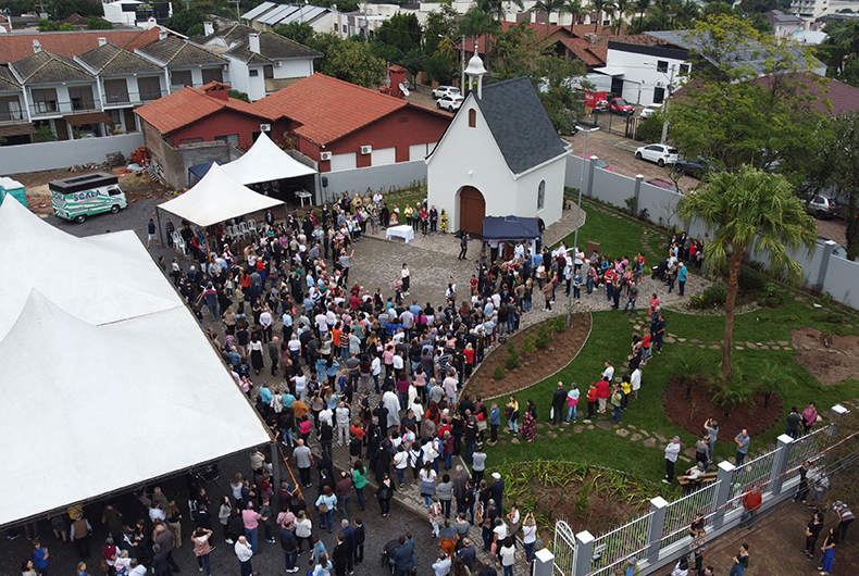 A emoção marcou a inauguração do novo Santuário de Schoenstatt, em Santa Cruz do Sul, na manhã deste domingo, 7. As atividades começaram em uma missa com lotação máxima na Catedral São João Batista, de onde os fiéis partiram em procissão até o novo local, localizado na esquina das ruas Fernando Abott e Rui Barbosa, no Bairro Goiás. A previsão de chuva não se confirmou e o tempo seco contribuiu para o sucesso da celebração, que contou com grande público. O bispo diocesano dom Aloísio Alberto Dilli foi o responsável por consagrar e abençoar o templo.