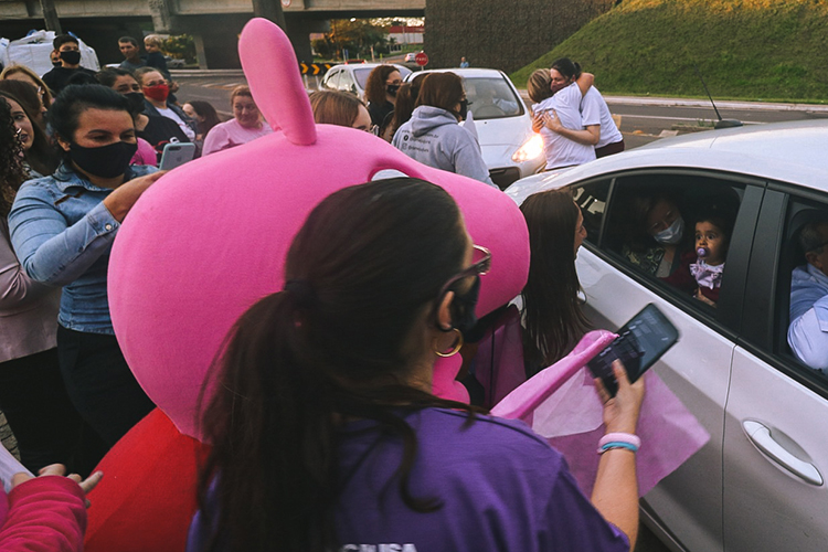Mais de 30 veículos com balões cor de rosa e ocupados por apoiadores vestindo camisetas da Campanha Ame Juju, saíram do trevo Fritz e Frida para celebrar a grande conquista. De lá, seguiram pelo Acesso Grasel e passaram por diversos bairros de Santa Cruz, até chegar na residência da família. Após meses de espera e de uma campanha de alcance nacional, a menina foi sorteada pela empresa farmacêutica Novartis para ser tratada sem custos.