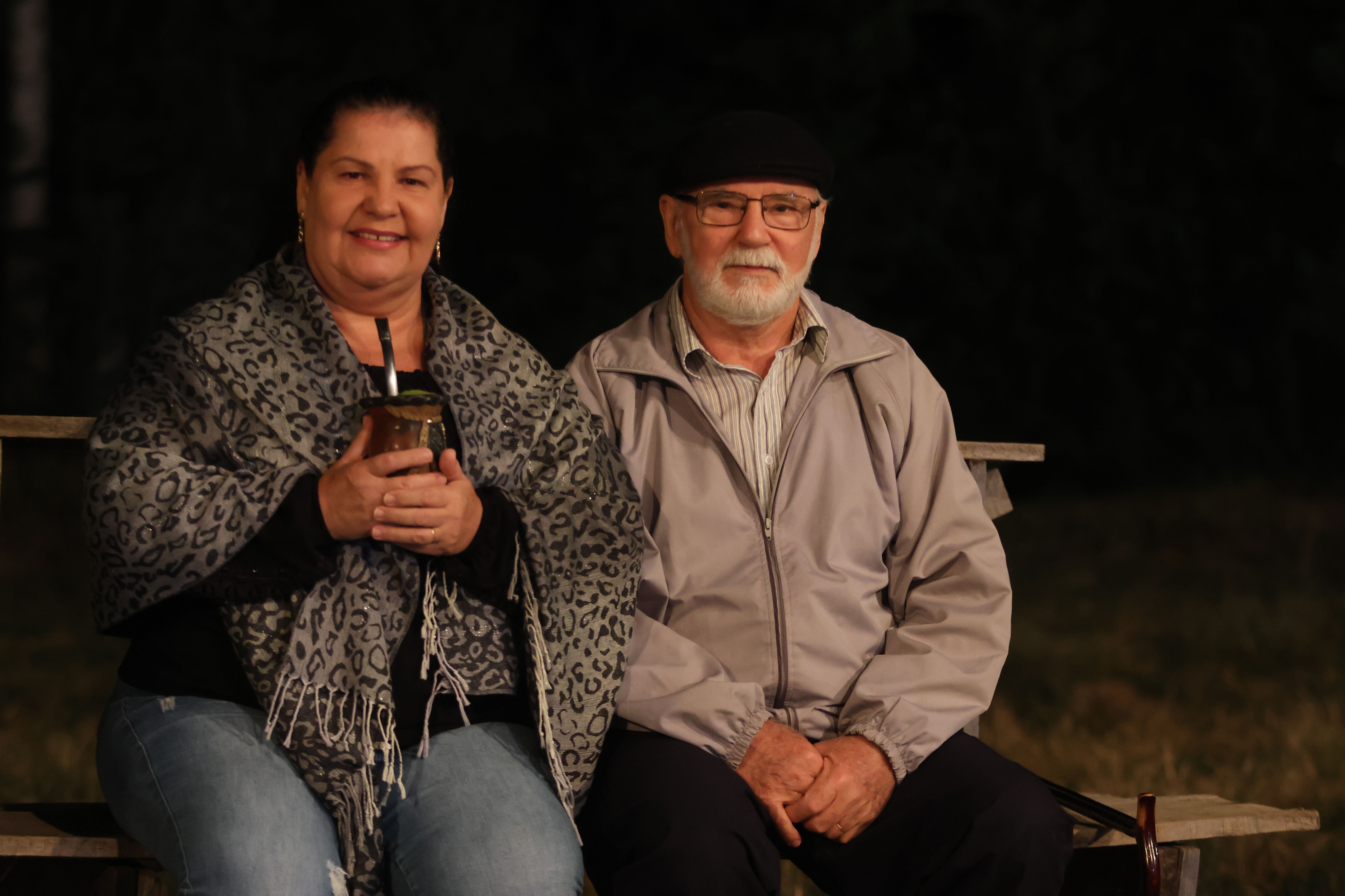 Quase uma hora e meia antes do início do espetáculo, Cleusa e Vendelino Piovesan, de 59 e 75 anos, respectivamente, já estavam com o mate pronto e se aconchegavam em uma parte das arquibancadas instaladas no Forno de Cal. Moradores do Bairro Arroio Grande, em Santa Cruz, o casal se antecipou na chegada para garantir um assento, pois sabia que a disputa pelos espaços seria grande ao se aproximar a hora da apresentação.