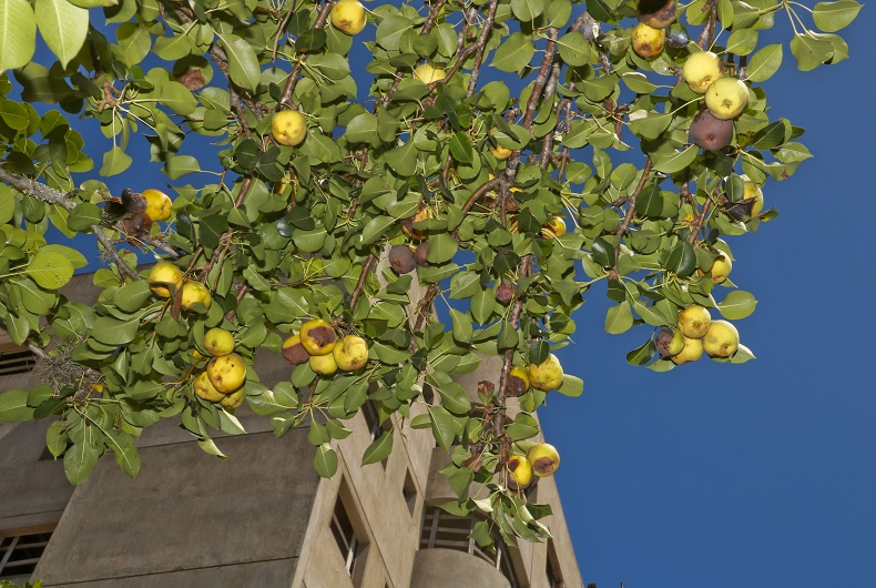 Uma das vias ladeadas pelas pereiras na cidade, a Rua Coronel Oscar Jost, no Bairro Santo Inácio, é lar de muitas histórias envolvendo as árvores e seus frutos. Mercedes Soder, de 78 anos, lembra que adquiriu a sua casa no local há mais de 40 anos e, na época da mudança, as plantas já se encontravam lá. Inclusive, no passado, havia muito mais árvores ao longo da rua – com o tempo, algumas foram cortadas ou substituídas por outras espécies. Ela lamenta que neste ano a maioria das peras esteja machucada ou com o interior escurecido. “Elas estão todas pretas por dentro. Quando são bonitas, eu colho e faço uma sobremesa, uma chimia, mas esse ano não deu para aproveitar quase nada”, afirma.