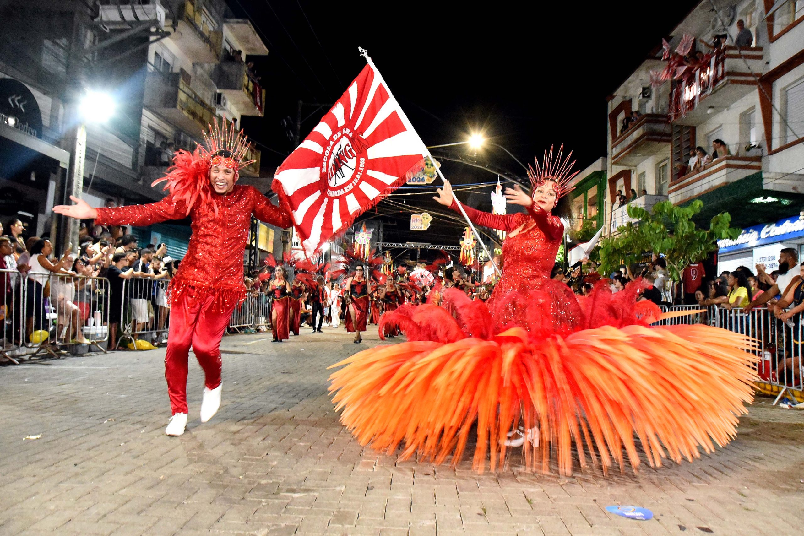 A primeira escola a cruzar a avenida foi a Associação Cultural, Recreativa e Escola de Samba Dragões do Rio Pardo, às 21 horas, com o enredo “Tá na boca do povo!”. Em seguida, às 22h30, a Realeza da Vila levou para o público o tema “Da pedra à internet em tempos de inteligência artificial: a Realeza convida você a visitar o mundo real”.