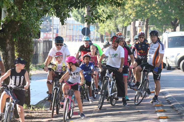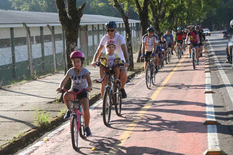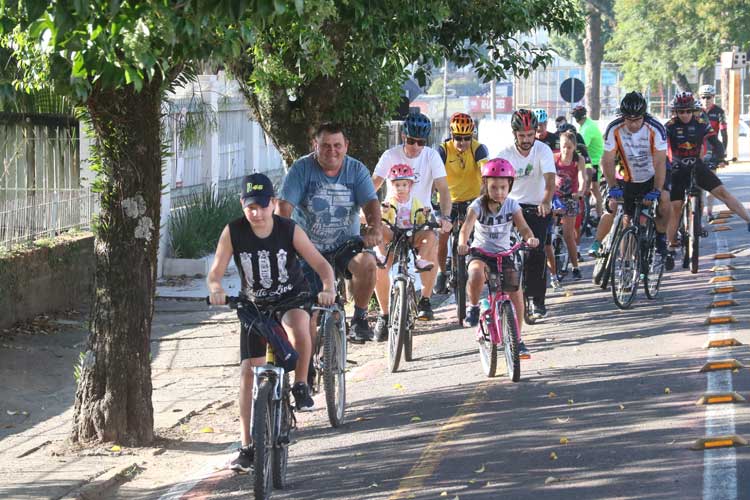 O grupo formado por homens, mulheres e crianças seguiu na ciclovia pela Assis Brasil até a Casa da Gazeta no Parque da Oktoberfest. O percurso contou com o apoio de agentes de trânsito que fizeram o balizamento.